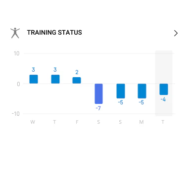 Wyższy wynik Statusu Treningowego oznacza, że Twój ostatni trening wydaje się łatwiejszy. Twój Status Treningowy mieści się w jednej z pięciu kategorii: Łatwy, Energetyczny, Zrównoważony, Optymalny lub Nadmierny.